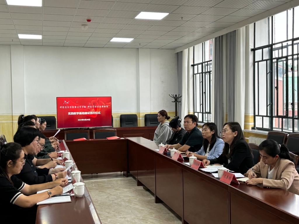 为了进一步加强员工校外实习和社会实践教学工作,培养具有实践精神和创新能力的专门人才,8月29日上午,在呼伦贝尔民族博物馆会议室,伟德官方网站与呼伦贝尔民族博物馆举行实践教学基地建设签约仪式。呼伦贝尔民族博物馆馆长陈桂婷、副馆长杨晓明、崔爽以及社会教育部主任席斯日古楞,公司领导班子成员、社会学系主任,以及2021级社会学专业员工参加了签约仪式。