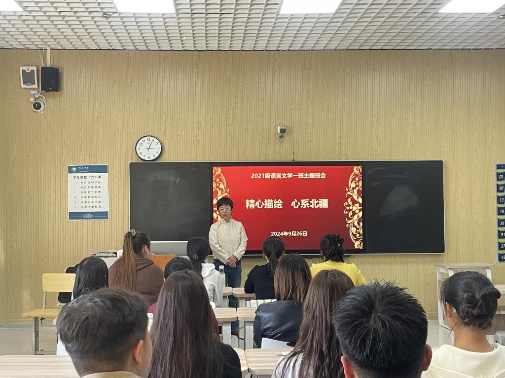 9月26日,伟德官方网站2021级中国少数民族语言文学一班迎来了一场别开生面的主题班会。本次班会由学业导师包艳花教授,以“精心描绘、心系北疆”为主题深入班级,与同学们共话青春理想,共绘未来蓝图,激发同学们对北疆大地深厚的情感与无限的向往。