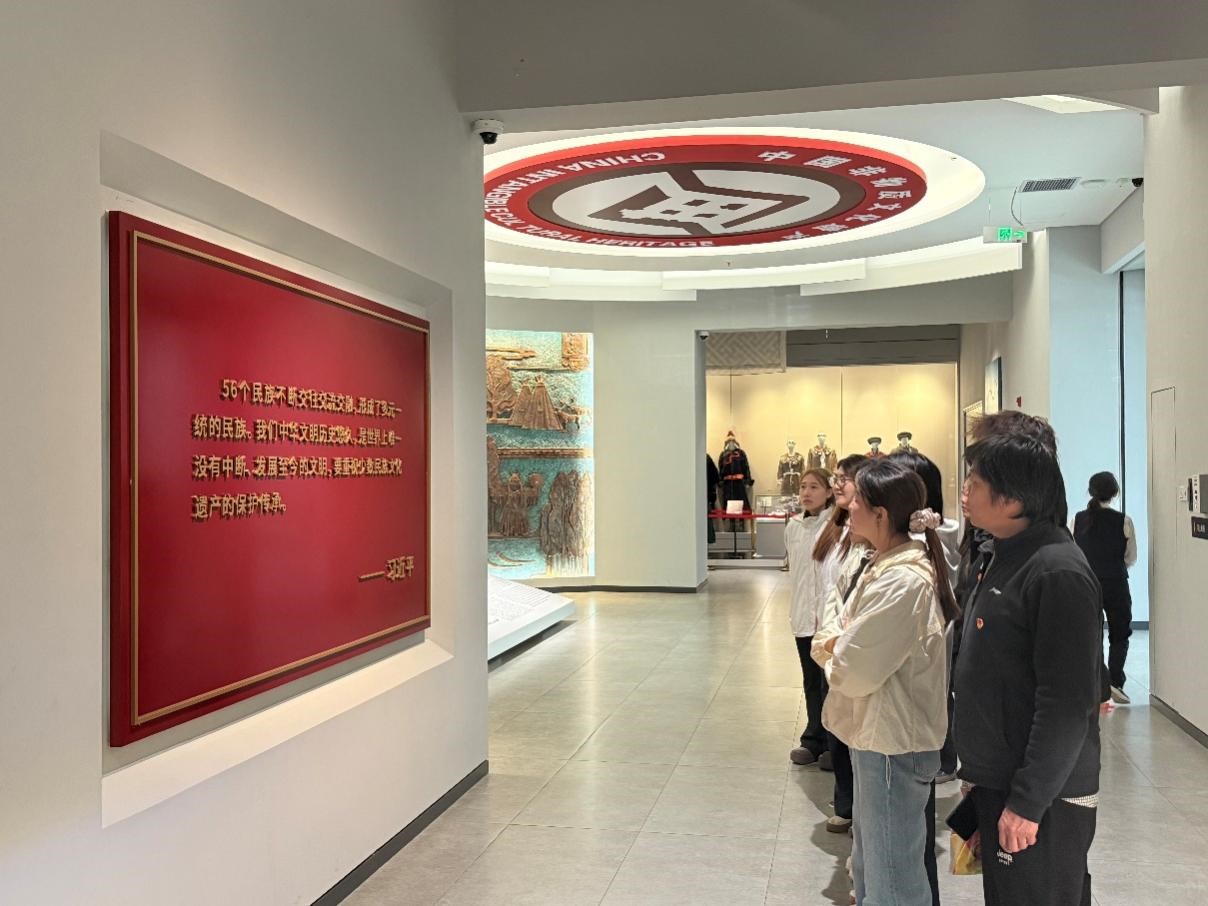 进入馆内,师生依次参观了“星熠北方——史前时期的呼伦贝尔”“融合之路——夏至南北朝时期的民族交融”等特色展厅。在这里,从冰河时期留存至今的猛犸象化石到承载着辽金时期文明印记的青铜器物;从清晰展示鲜卑族南迁路线的历史地图到定格“三千孤儿入内蒙”这一感人历史瞬间的影像资料,一件件珍贵文物与现代科技手段完美融合,生动再现了呼伦贝尔从远古文明曙光初现到新时代蓬勃发展的壮阔历史画卷。通过实物陈列展示与详尽的图文解说,大家不仅对呼伦贝尔的历史变迁与发展脉络有了更为全面、深入的了解,更真切感受到了历代建设者们在艰苦环境中艰苦创业、顽强拼搏的奋斗精神。
