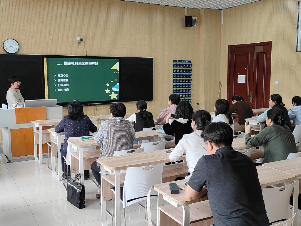 包艳花回顾了自己多年来在科研领域的耕耘与收获。她表示,科研工作不仅是对知识的探索,更是对国家和社会的贡献。而国家社科基金项目,作为推动哲学社会科学研究的重要力量,对于促进学术交流、提升研究水平具有不可替代的作用。在谈到项目申报的经验时,她强调了选题的重要性。建议老师们在选题时,要广泛调研、深入思考,确保选题既具有创新性,又具有可行性。包艳花还详细阐述了项目申报书的撰写技巧。她指出,申报书是项目评审的重要依据,因此必须精心准备。在撰写过程中,要清晰阐述研究目标、研究内容、研究方法、预期成果等关键要素,同时要注意语言的准确性和逻辑性,确保评审能够一目了然地了解项目的核心价值。除了选题和撰写技巧,她还分享了一些申报过程中的实用建议。比如,要及时关注国家社科基金项目的申报通知和指南,确保自己符合申报条件;要积极与同行交流,借鉴成功经验;要保持良好的心态,面对挫折不气馁,持续改进自己的申报方案。