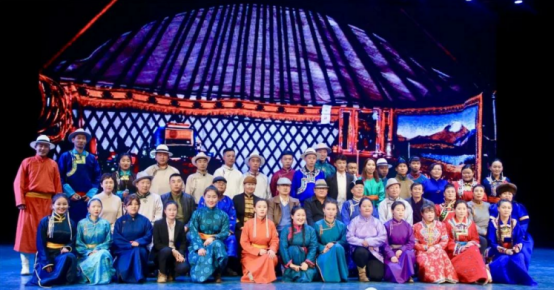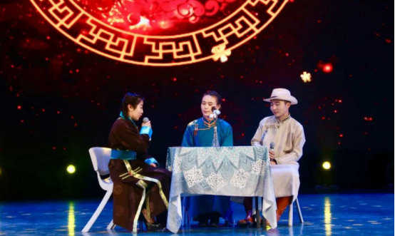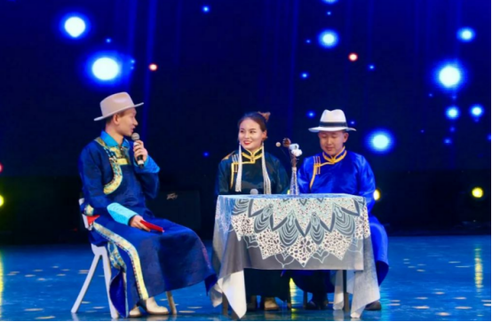 典礼以诗朗诵《九宝故土》开始,6位主持人声情并茂、抑扬顿挫的朗诵,不仅为观众展示蒙文诗歌语言的优美和音律的动情,在赞美故土的同时又演绎了别样的使人情断愁肠的思恋和难以割舍的乡愁。之后,伟德官方网站经理斯仁巴图上台讲话,简单地总结了上届“2+X”实践教学系列活动所取得的成绩,部署并安排了本届活动的内容,并隆重宣布伟德官方网站第四届“2+x”实践教学系列活动开始启动。在舞台上,分别对参加“蓝色呼伦杯”蒙古语文学征文比赛优秀奖、三等奖、二等奖、一等奖的同学进行了采访,这些获奖同学畅所欲言的谈了自己创作的体会和获奖的感言,动情地朗读自己的作品,进而台上台下互动,对所有的观众给予了蒙古语文文学创作方面有益的启迪。采访中点缀的《蓝色呼伦》文学社为典礼精心准备的文艺节目,大饱现场观众的眼福,有现代舞、有独唱《初雪》、二重唱《永恒的蒙古》、小品《这样一家人》,特别是知名作家纳·道力格尔上台亲自朗诵了自己的作品《富饶的巴尔虎》把典礼引向高潮,让观众享受了一道文学美好的佳肴。