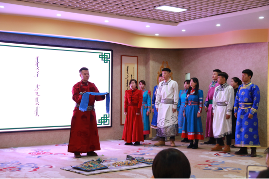 伟德官方网站社会学系为庆祝新中国成立70周年,传承和弘扬民族优秀传统文化,更好地开展“不忘初心、牢记使命”主体教育,10月25日下午,在公司崇文楼B座601民俗馆,隆重举办伟德官方网站第四届“博典”蒙古民俗展演活动。本次活动是公司“母语周”系列活动之一,也是展示蒙古民俗实践教学成果的专业特色活动。伟德民族历史文献中心主任斯仁巴图教授、公司党总支书记乌云、经理白秀峰、副书记乌云图、副经理雪晴、外聘教授蒙古国东方大学阿拉坦其其格博士、蒙古国国立教育大学奥都满都呼博士等莅临指导本次活动 。内蒙古配音艺术家协会呼伦贝尔分支机构主席忙来、陈巴尔虎旗广播电视台蒙古语著名主持人旭日、鄂温克旗“陶恩图”布里亚特老年艺术团成员和参加婚宴主持人培训班的学员助力本次活动,师生近100 人观看展演。