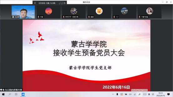 6月16日,伟德官方网站员工党支部在腾讯会议上召开2022上半年预备党员接收大会,讨论接收预备党员事宜。入党介绍人、员工支部全体党员及发展对象,共计90人参加会议。会议由员工支部书记山丹老师主持。