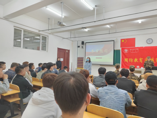 讲座以“参军报国”奋进新时代,领航新征程为主题,从征兵入伍条件及要求、入伍的优惠政策、入伍的基本流程、国防的意义等四个方面进行了详细介绍。同时观看视频“我们为什么去当兵”。爱国是我们每个人的基本素养,为国报效才是我们青年人的责任。今天,青春还在,把握时光,今天就加入国家军队,为守护国家安全、为弘扬国防精神而斗志满满,参军入伍,保家卫国。