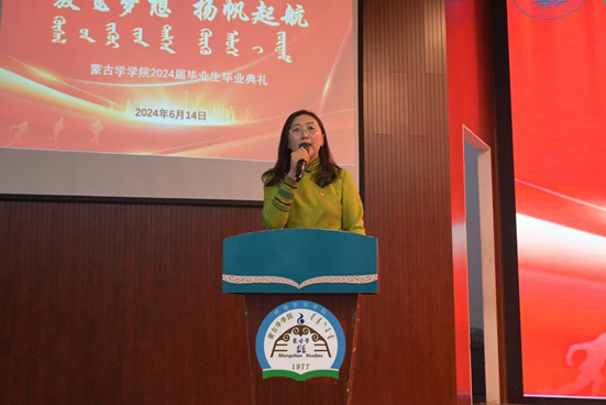 毕业班辅导员特古斯朝克图作为教师代表发言。他向同学们送上祝贺,并表示,毕业并不意味着结束,更是一种新的开始。希望同学们在各自的专业领域有所成就,拥有一个美好的未来。